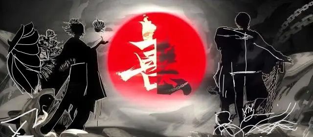 剪影脚旁边的俩像铁球这东西,超大可能是幼年荒,被拿铁链铁球村民献祭,脚旁边还有浪花。荒是神明,他是善良的出SP恶,可能性不大。