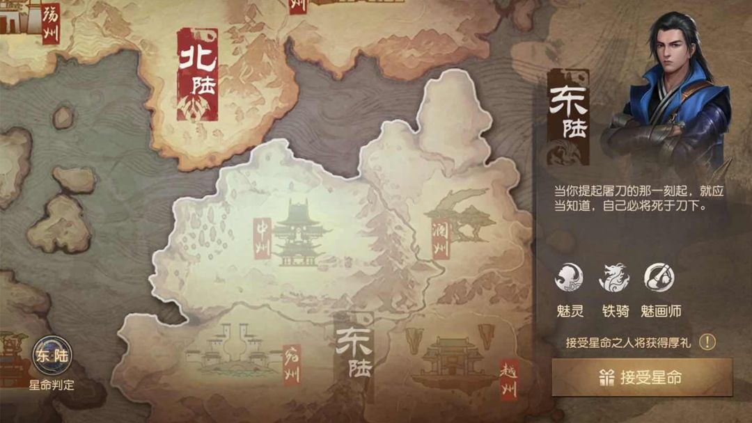 踏入九州世界的那一刻,在星命的指引下,玩家便会被分配到互相仇恨的两大阵营:东陆或是北陆。两大阵营天生仇恨,自动红名,甚至敌对阵营的NPC也会对玩家开启红名追杀。阵营玩家可以激烈的野外击杀、战场厮杀、公共地图抢夺物资,甚至可以组团屠城,击杀对方大将,血战敌方主城。