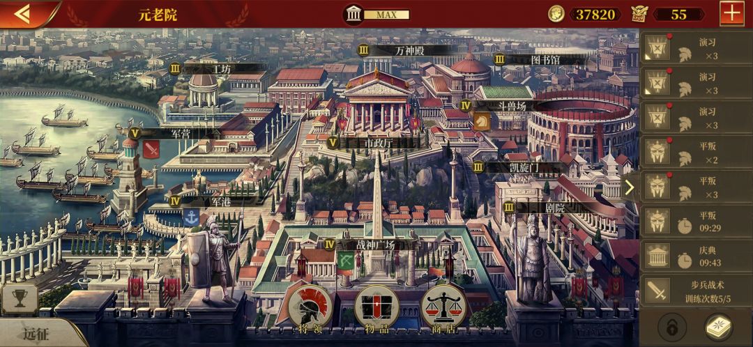 军营-步,斗兽场-骑,战神广场-弓,军港-海