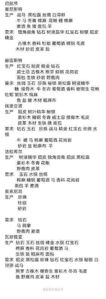 需求 丝绸 玉石 珍珠 秘银 黑松露 树液精华