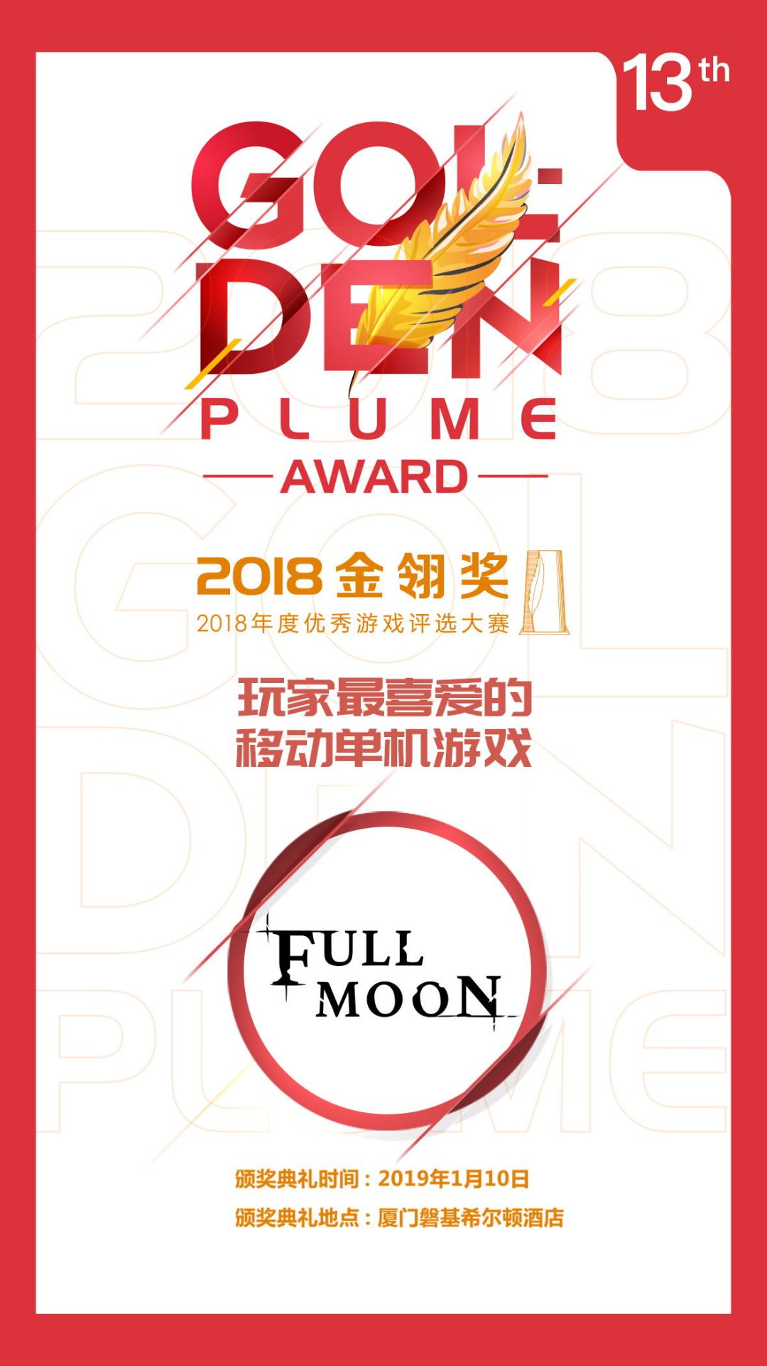 在这个节日里,喜讯频传。小红帽刚刚得知《月圆之夜》获得2018年金翎奖——玩家最喜欢的移动单机游戏!嗷呜,蟹蟹大家><小红帽激动的说都不会话了。