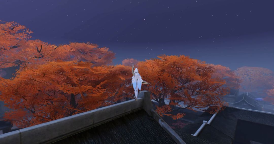每天的下午5点到7点,游戏也与现实世界同步进入黄昏,夕阳的余辉洒在每一个角落,散发着暖暖的橙色光辉。树叶被洒下一层鎏金的薄纱,天光云影伴随着暮歌化作一道道绯红的霞光。