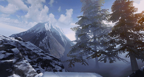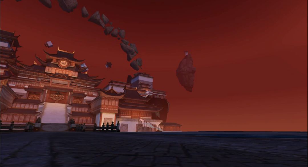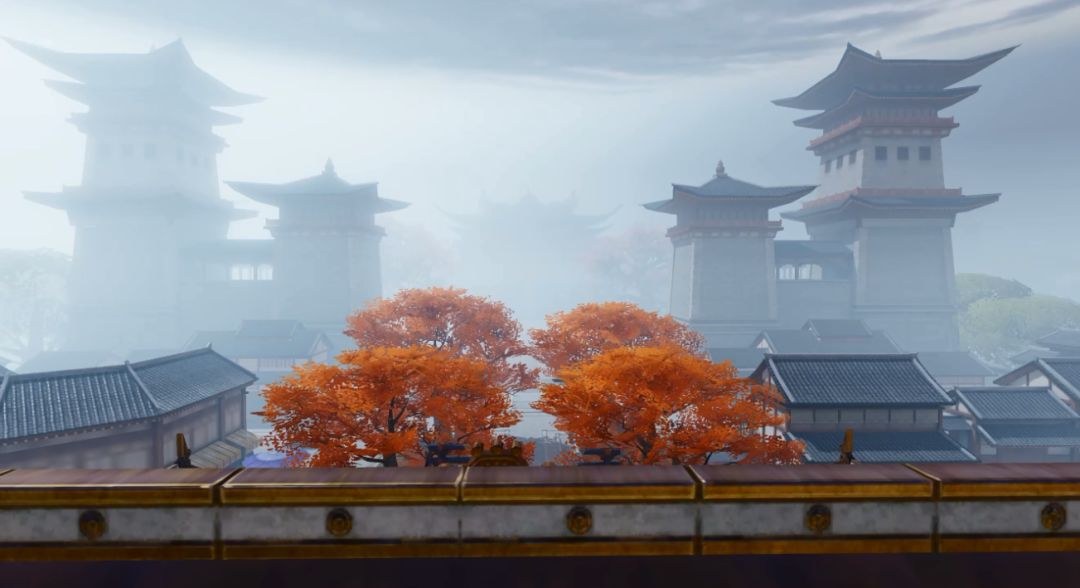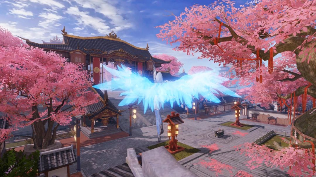 清晨6点到8点,太阳还未透出云层,九州世界的大地山川皆笼罩在一片薄薄的雾气中,宛如仙境。8点之后,清晨的雾气散去,晴空万里。在白日的城镇里,温暖的阳光洒在灼灼盛开的繁花上,是万中无一的美景。