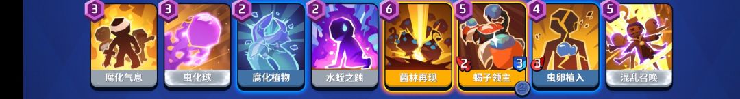 因为超喜欢落暮,但就是抽不出来它的卡,便凑了这一套卡组主要目的便是铺场.进场时先拿虫化球或植入,对面放卡的话就直接虫化.腐化用来应对你被包围或卡被缠绕.当熬到有五点时,就可以开始铺场,根据对面放的兵数选择虫化球或蝎子解围.如果怕隐匿的话可以把水蛭换成发光细菌,但其实也是可以靠腐化打隐匿的.(毕竟五个面包虫还是很有用的)如果对面消耗你,不停放陷阱猥琐时,铺完场直接注意走位望他身上丢虫卵植入.