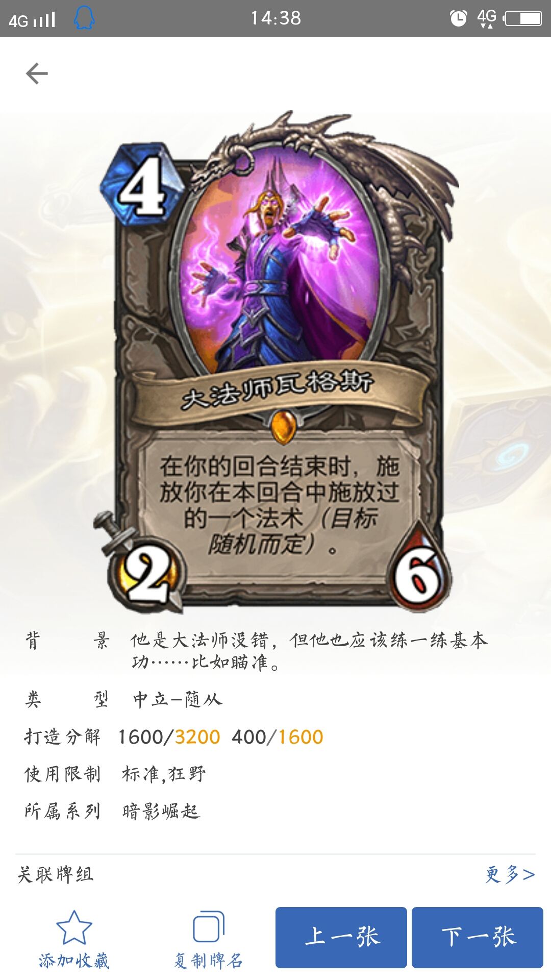 大法师格瓦斯:四费二杠六身材。效果,在你的回合结束时,释放你在本回合中释放过的一个随机法术(目标随机而定)。