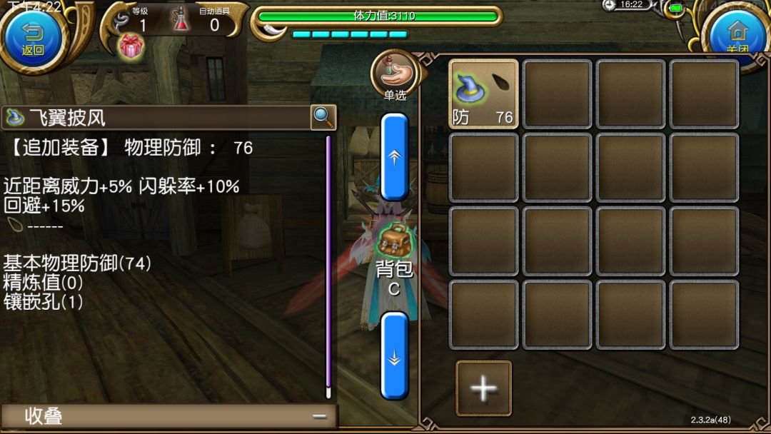装备的话可以用普通闪光装备,追加是飞翼披风(属性如下图),最好双孔,优先魔轮(攻速),假如是单孔的话,可以吃闪躲药。