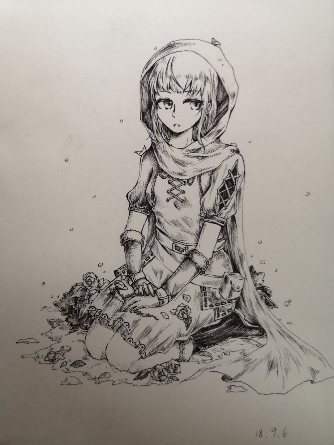 其实是个摸鱼作品,小红帽跪在雪地里面。