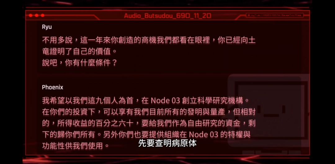 N.A.6940908—node03:土竜威胁phoenix,如果一年之内没有研究成果,就废弃nora