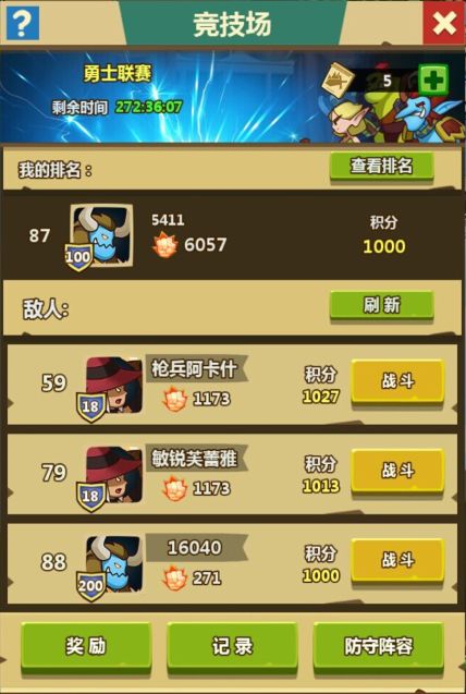 竞技场战斗为15回合,战斗超时则失败。如果失败请不要灰心,战力差不多的情况下,通过更换英雄或者