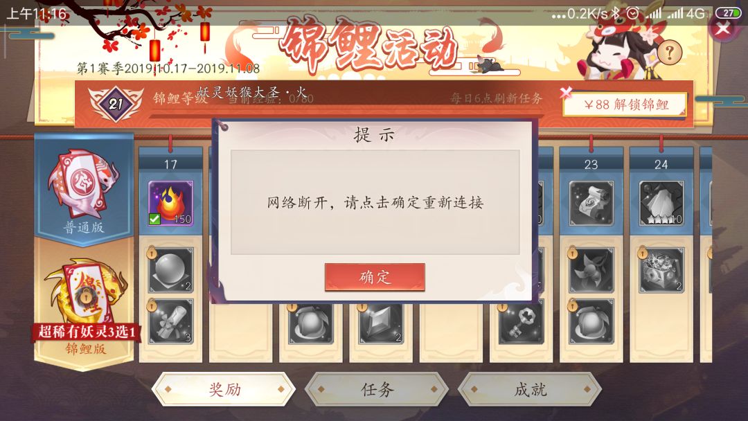 解锁锦鲤鱼活动,立马掉线重连