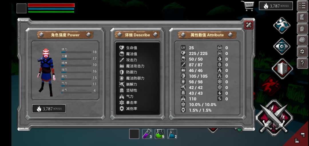 在这里我要说明一下,就我发的那个属性,体力值用完以后,boss会还剩两刀的血量,这时boss刚好起身,但马上我的体力回上来,boss直接ko(体力值低的留一个翻滚的体力值)