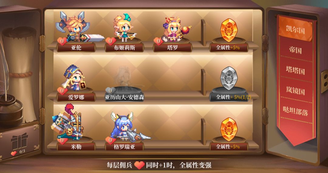 通过时之回廊模式得到的礼物可以提升英雄的亲密度,当一排英雄的亲密度同时升级时,全属性也会对应有所加成。亲密度升一级,全属性+1%。同时完成亲密度的升级也会有相应的钻石小奖励哦。