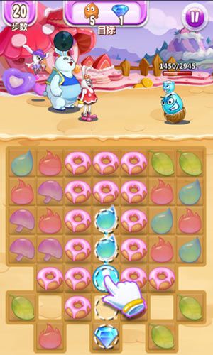 这一关相对还是很简单的,钻石就在路径之内的地方,只要消除了障碍甜甜圈即可通关。