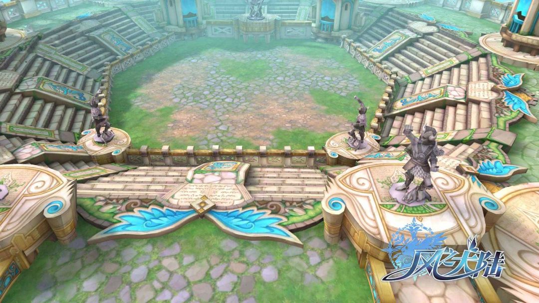 集结完团内高手,各位选手便能在指定时间内进入战场候场。圣团车轮战的战场坐落于一个多边形的角斗场,候场或观战成员均可在战场的三面走动。