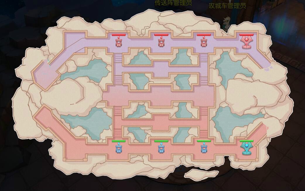 攻守方会分别出现在战场左右两边,战斗倒计时结束前攻方摧毁任意2个水晶即可获胜,反之则防守方防守成功。