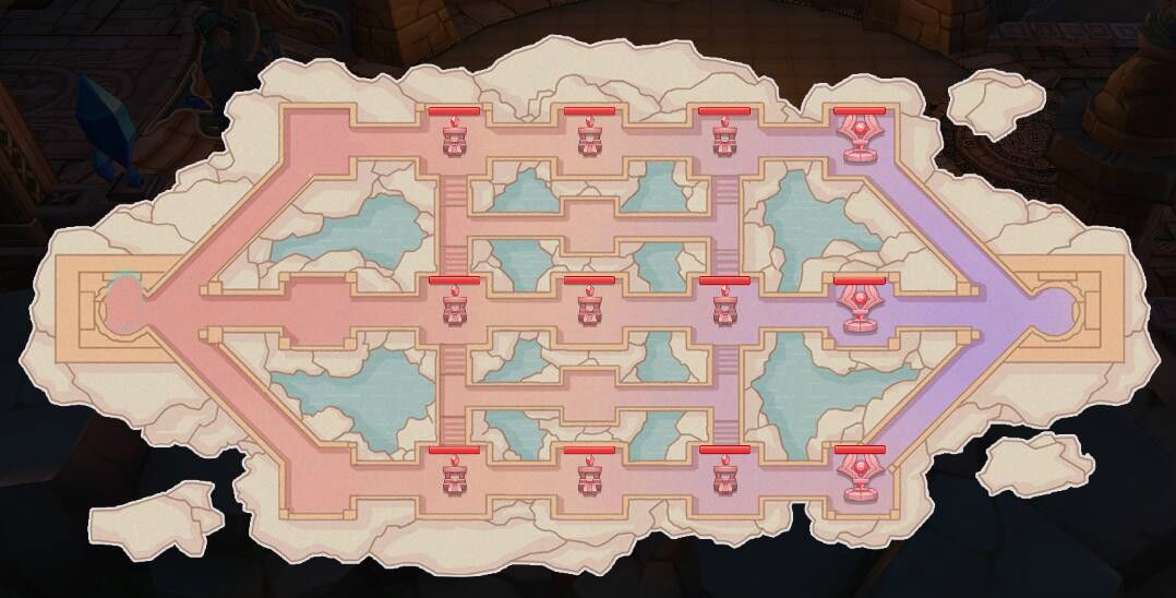 两个圣团将均出现在战场左边,并根据圣团分为上下两路,率先攻破对应水晶的圣团获胜。