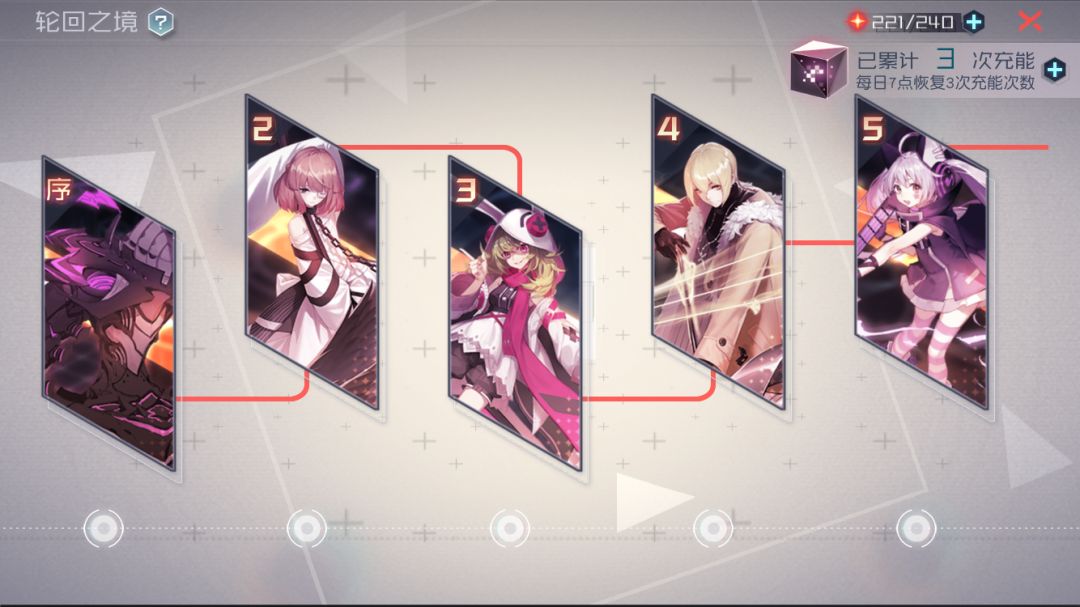 轮回之境每日可提供3次充能奖励机会,拥有充能奖励机会时完成轮回之境关卡时将会获得额外一份奖励,充能奖励机会最多积累45次,达到或超过积累上限后,每日将不再自动补充充能次数。