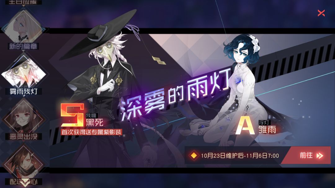 本次“深雾的雨灯”限定召唤中,会额外出现黑死(S级)、雏雨(A级)两位神器使。