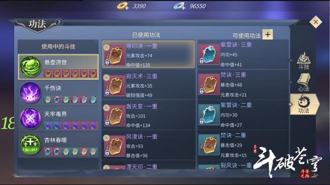 在功法上可以选择增加防御与生命值。无相法身和月影映重山增加的元素防御可以减少元素攻击的伤害;泰山决和天魔炼火既能增加生命值又能增加物理防御和法术防御,增加的双防御可以保证药族的生存空间;电闪诀提供的法术暴击减伤可以防止药族在技能冷却时被高爆发伤害的雷族或者攻击流药族直接带走。