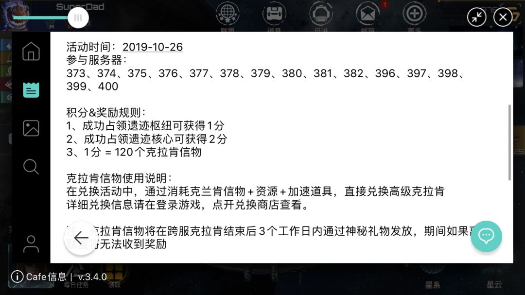 活动说明:参与跨服克拉肯,占领遗迹建筑获得相应的积分,积分越高可获得的克拉肯信物越多!