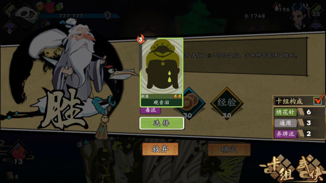 无情饮血运气还行,第3层齐了,忠武第4通关齐了,弃牌核心首饰防装拿不到,我就切英雄走毒针了,前期全靠铜尸东方主动过图,刺客真的好苦
