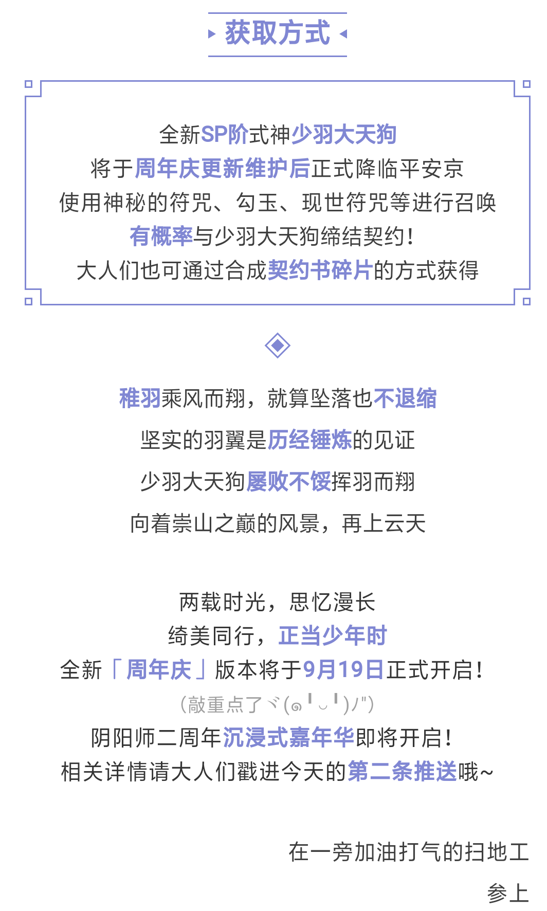 阴阳师周年庆 ——云天之志,少羽大天狗即将登场!