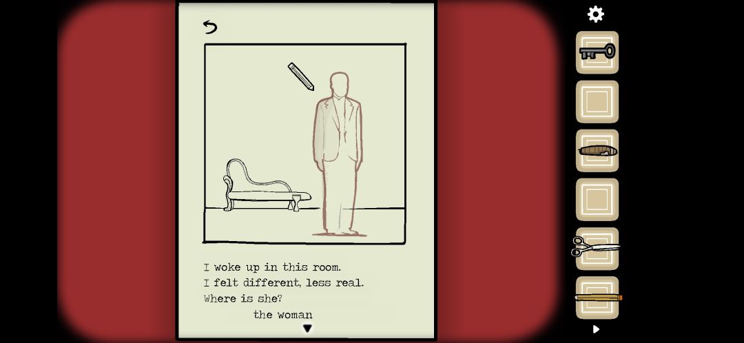 “我从这个房间醒来,觉得有些不对劲,不太真实。她在哪里?”用铅笔将人物填满。
