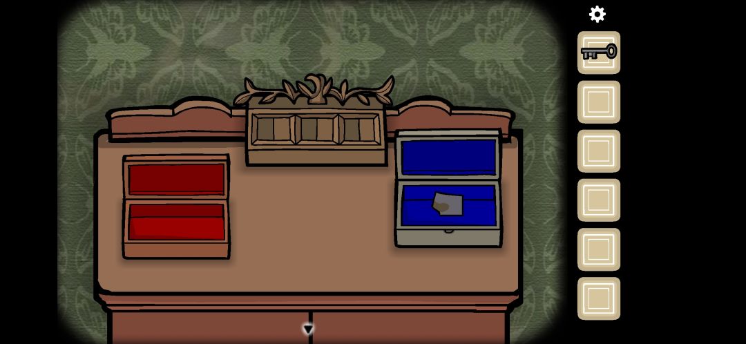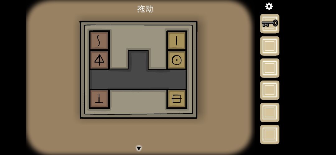 打开第一个盒子,盒子里面是一把钥匙。旁边的盒子虽然上锁了,但迷题很简单。所谓的锁就是一个简易版的华容道,移动木块,让木块上的图案和盒子上的图案一致即可打开盒子。