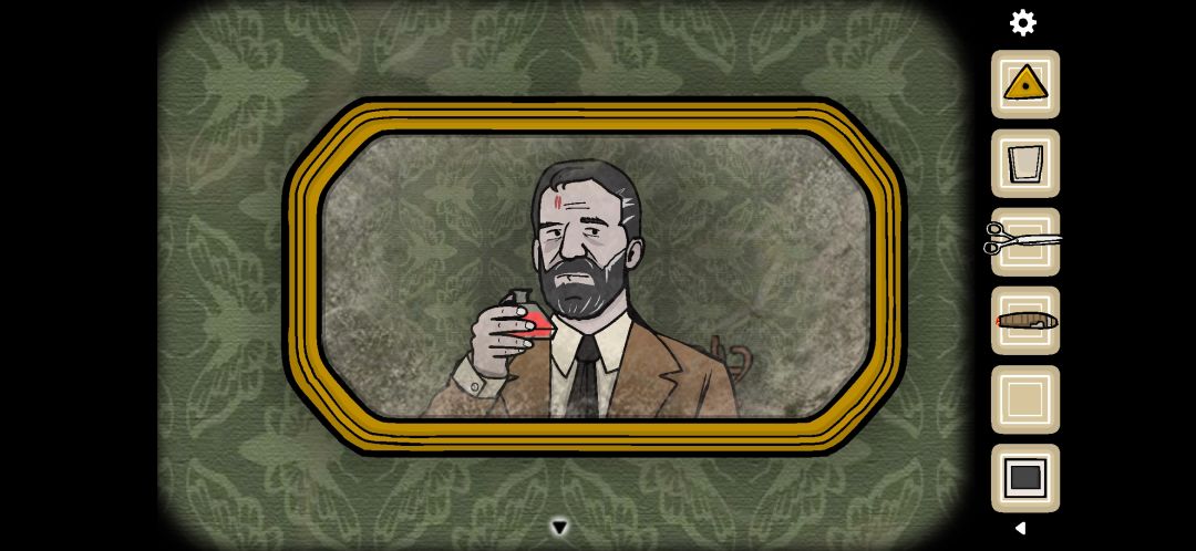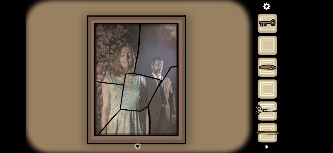 左边的柜子上有一个相框,里面的照片缺失了,应该需要找到碎片补齐。(之前盒子里获得了一块)点击烟灰缸里的雪茄,将其带走。