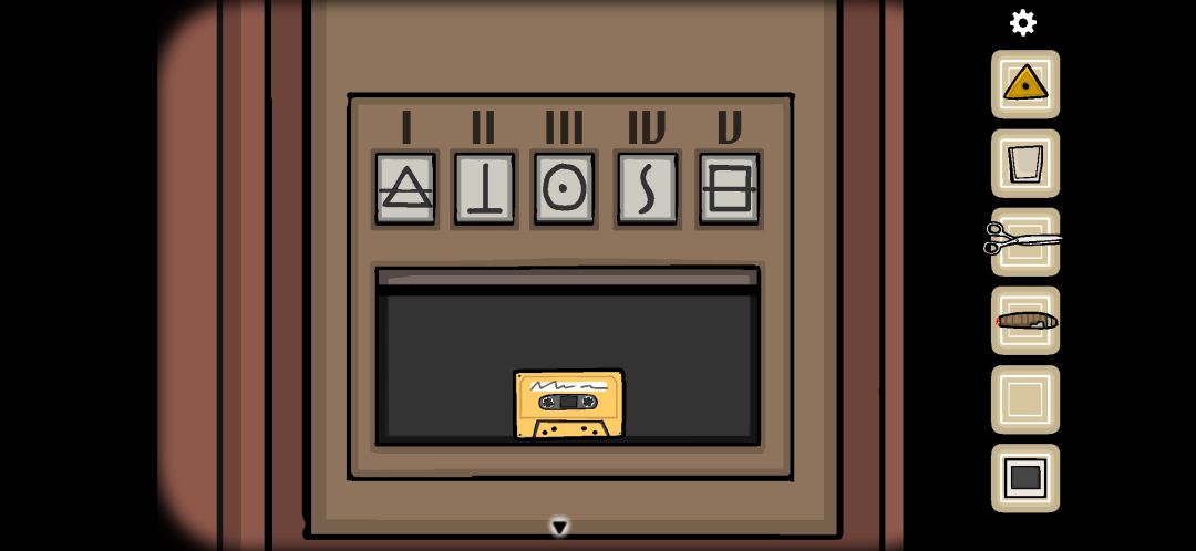这个符号和1号场景柜子的密码锁图案一样,所以这应该就是密码了。(为了方便记忆,你们可以试试圈s日z螺的记法😂)将密码输入进去,得到胶带。可以去修好电视机的电线啦!