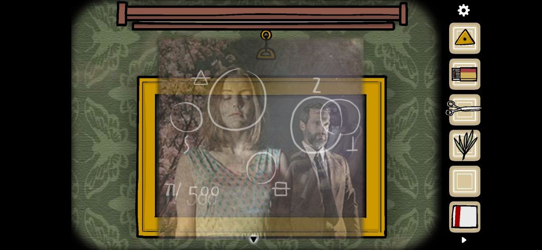 调整完电视后,电视里的Dale告诉我们往身后看。屏风后藏着劳拉,根据她的眼神调整面部方向,最后得到裙子的一角。