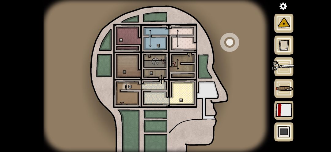 注意看锁孔的时候,人脸会突然贴过来,所以做好心里准备。和我们对视的眼睛上有❌和点的图案,根据其调整钟表指针。