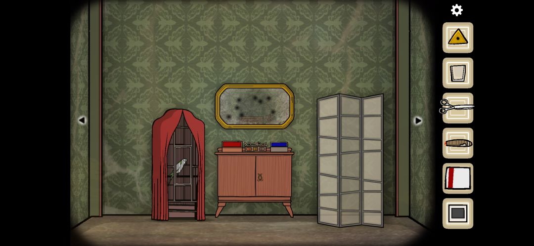②号场景。场景里的物品有鸟笼、柜子、镜子、屏风、以及柜子上的两个盒子,三个凹槽。(详情见下图)
