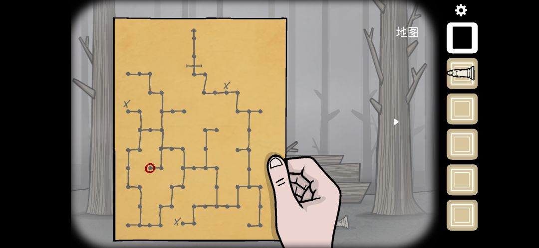 出门后 跟着前面的鸟一直走(我也不知道那是哈维还是乌鸦)期间碰到一头鹿,最后会遇见乌鸦先生。和他攀谈后他将一张地图交给了我们。