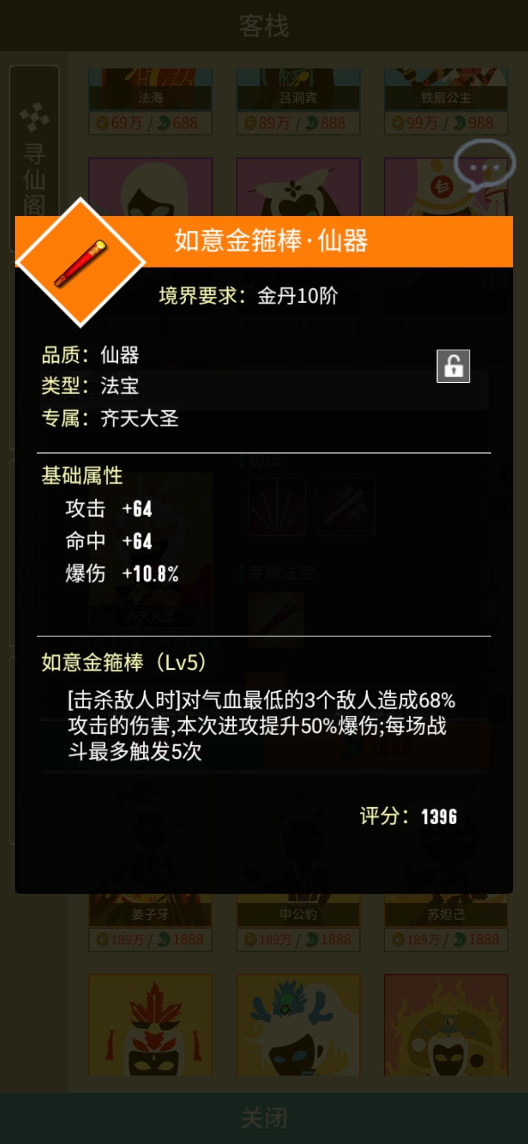 猴王技能在客寨自己看,这里只讲解下法宝,天地一棍,随机敲三个,在怎么黑也能敲到一个你的c位或者控制上,技能自带50%爆伤,法宝再加60.8%,再加上设定的百分百暴击,想都不用想,只要一个c位暴毙 法宝击杀的连锁反应直接全部带走。