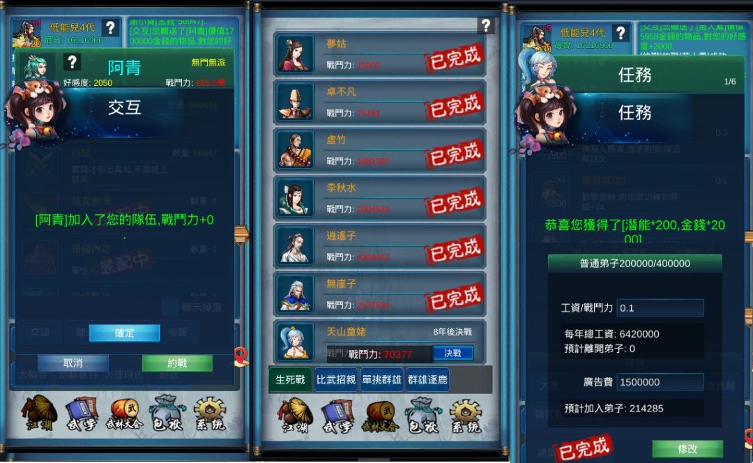 武侠浮生记1.32 广告开局攻略 挑战自創門派一统江湖 战力三千万