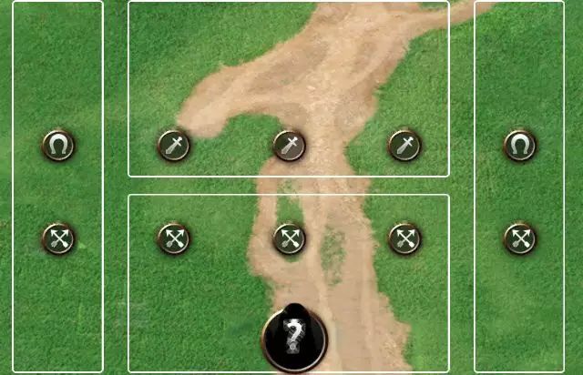 前剑后弓阵型是一个PVE万能阵型,前排以长剑手和骑兵为主,后排以弓兵作辅助。在兵种相克上能有效抵御敌方前排长矛手与长剑手,在攻击距离上还能有效形成前后排输出的交叉火力。
