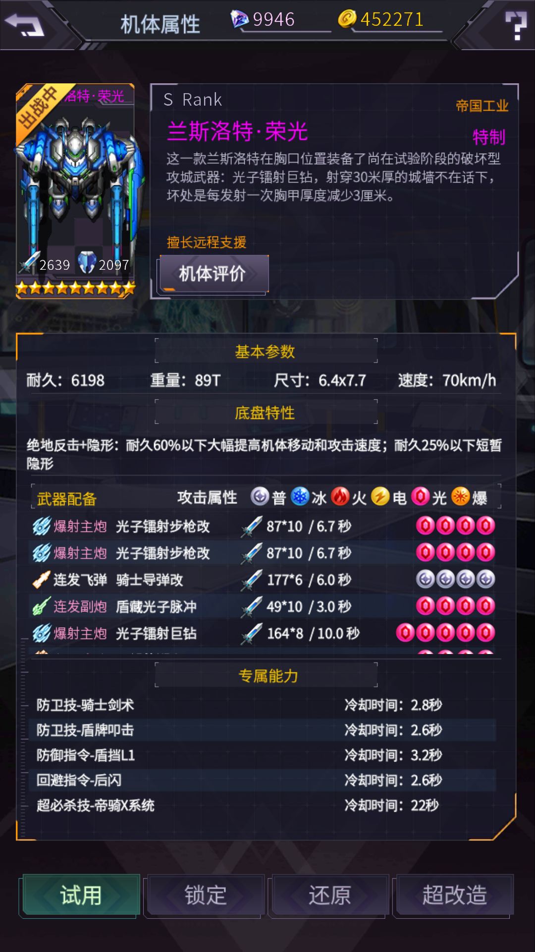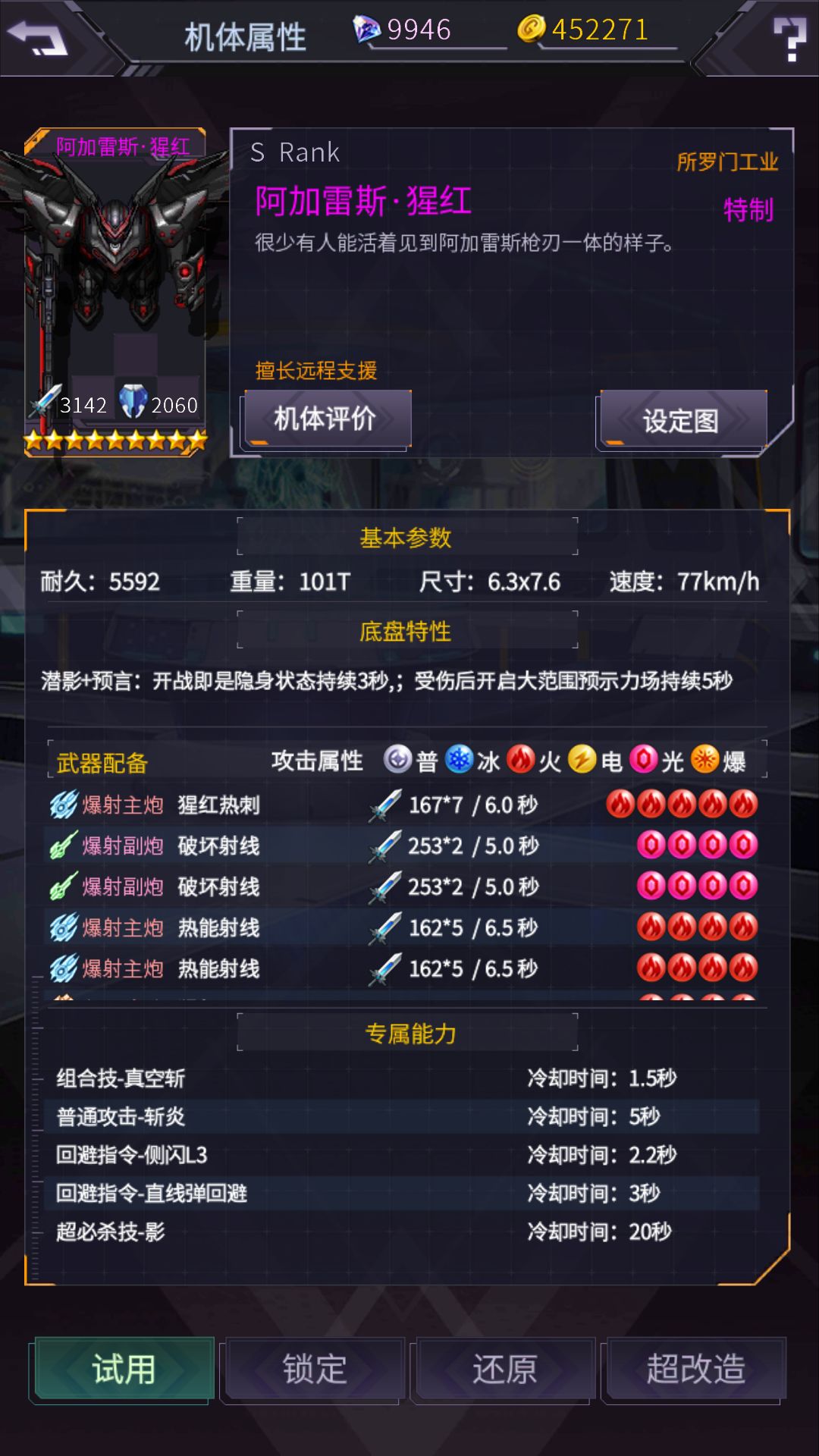 射击 600 格斗 573 防御653 反应 600