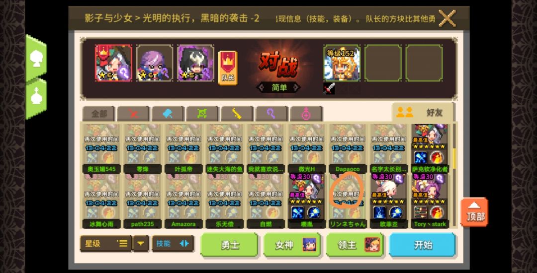 用好友的勇士通关以后,点重新挑战,再点勇士按键,进入界面后将一个勇士喂满面包进化,在返回后之前带好友勇士通关的阵容会重新出现,且包括已经用过的好友勇士,进入助战界面后,会发现该勇士已经进入冷却,再点开始到战斗结束后,会出现服务器无应答,该好友不是好友什么的,有时候甚至会闪退。今天出现了好几回,开始我以为是服务器的原因,停了几个小时,再上发现还是,然后我找了找原因,发现了和好友助战有关,这应该是bug。