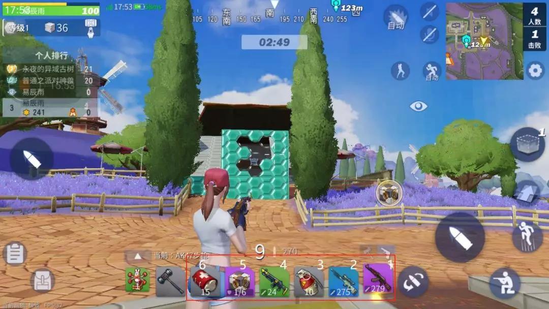 第二格:VSS。当大家发现远距离的对手时,可以快速使用VSS瞄准对手,还可快速切换放置在第一格的AKM,对体力不足的对手进行补刀。远/近距离武器切换自如,横扫BT自然不在话下!
