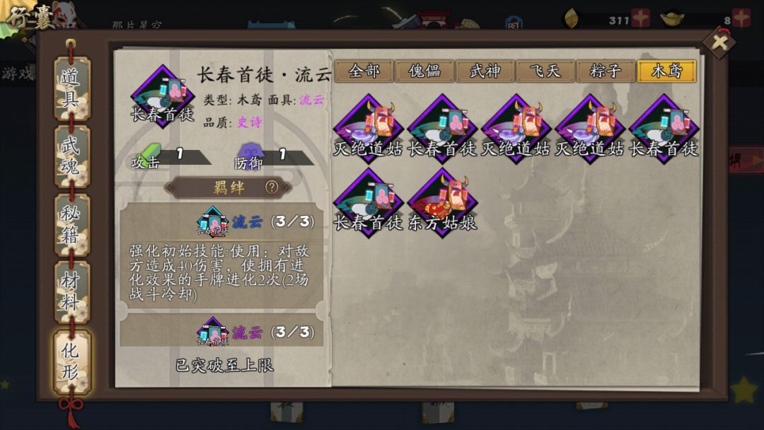 装备:按优先级流云=紫府=六阳冷血>清虚四象等。