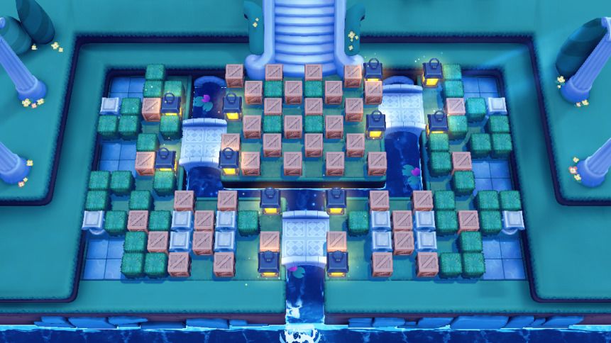 游戏另一大看点是颇具特色的百变地图,万圣派对诡魅怪诞,蔚蓝海港清新怡人,宝石之夜神秘感满满。值得一提的是,不同场景在对战时还会呈现出不同特性,如此一来,对战体验也更加多元丰富。比如在宝石之夜地图中,所有箱子都装满了数不尽的璀璨宝石。你要做的就是在比赛结束之前尽可能拿到更多的宝石,然后获得胜利!