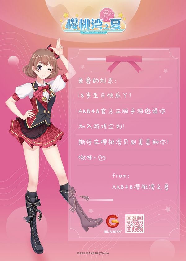 对于这份特殊的18岁的生日邀请,念念非常高兴和惊喜,她也答应了这份邀请,希望能够在《AKB48樱桃湾之夏》中与玩家们邂逅,也希望大家多多支持她!
