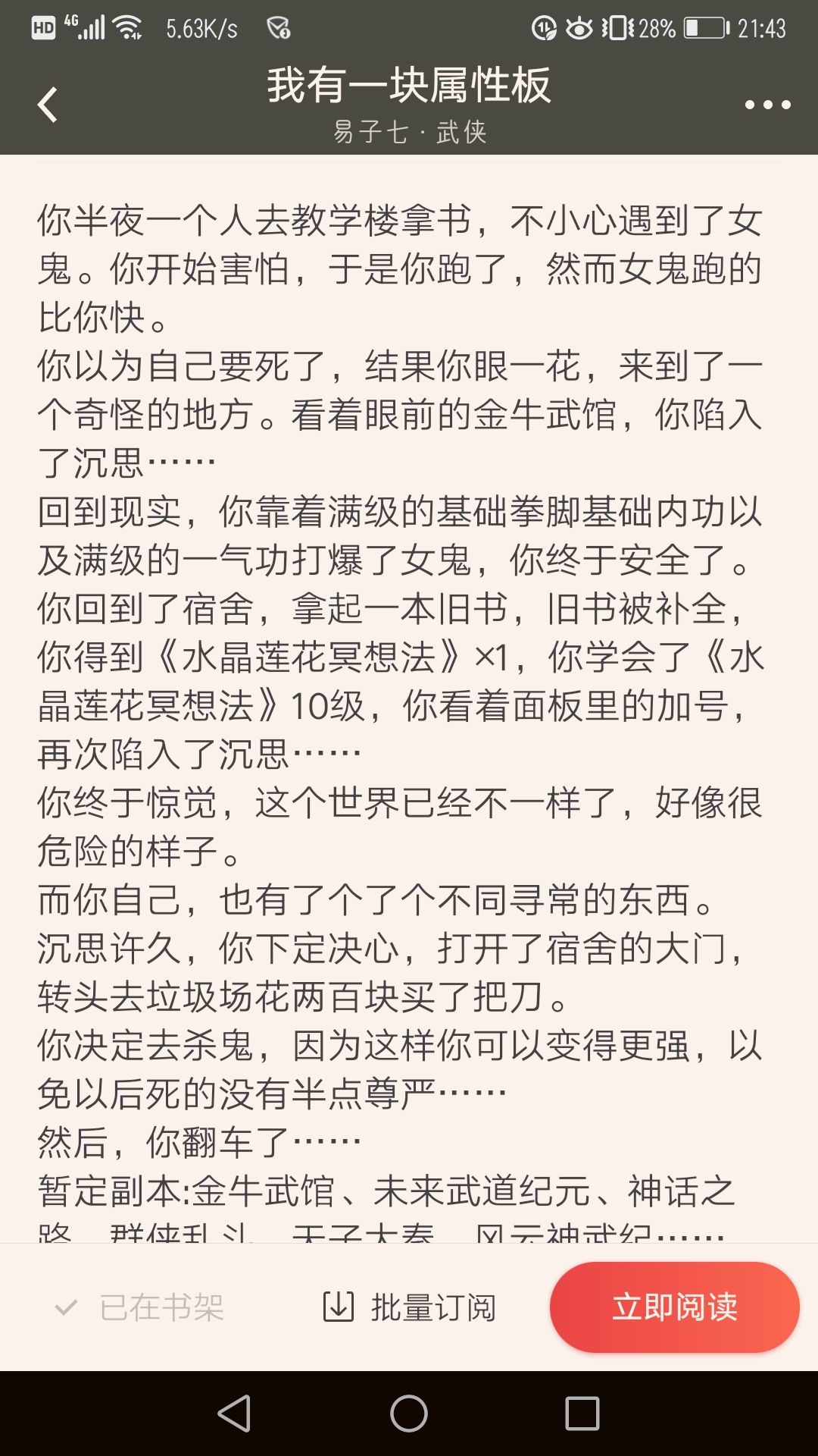 是无限流,金牛武馆是第一个世界。看了一下,还不错。