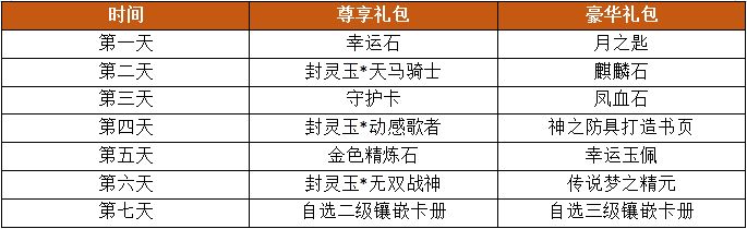 手气盛礼一共分为7天,每天提供两个礼包:尊享礼包和奢华礼包供大家购买。