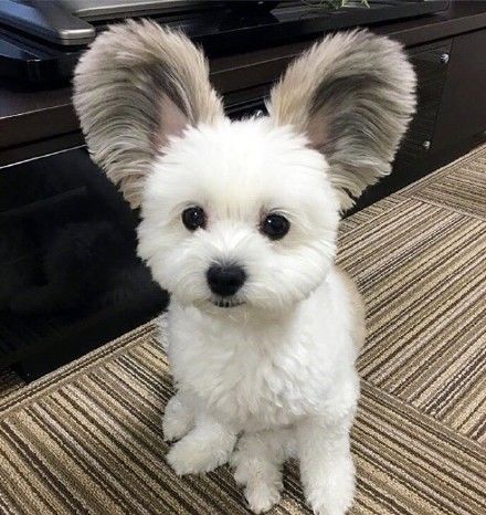 国外一个网友家的狗狗Goma是马尔济斯犬和蝴蝶犬的混血犬,这对招风耳是要萌翻天的节奏,扑棱扑棱的样子,感觉马上就要起飞了~