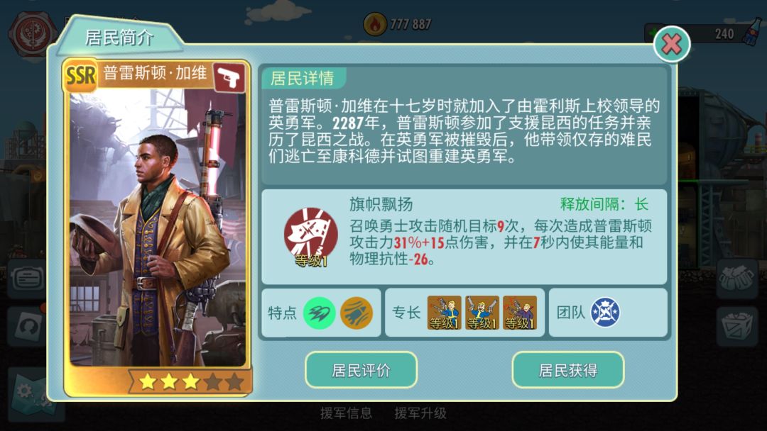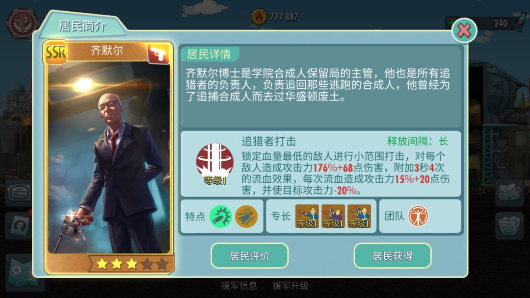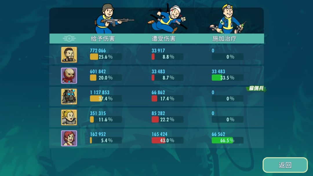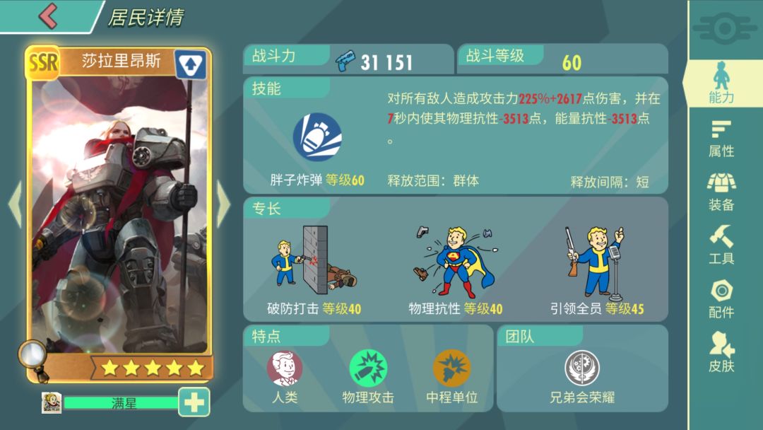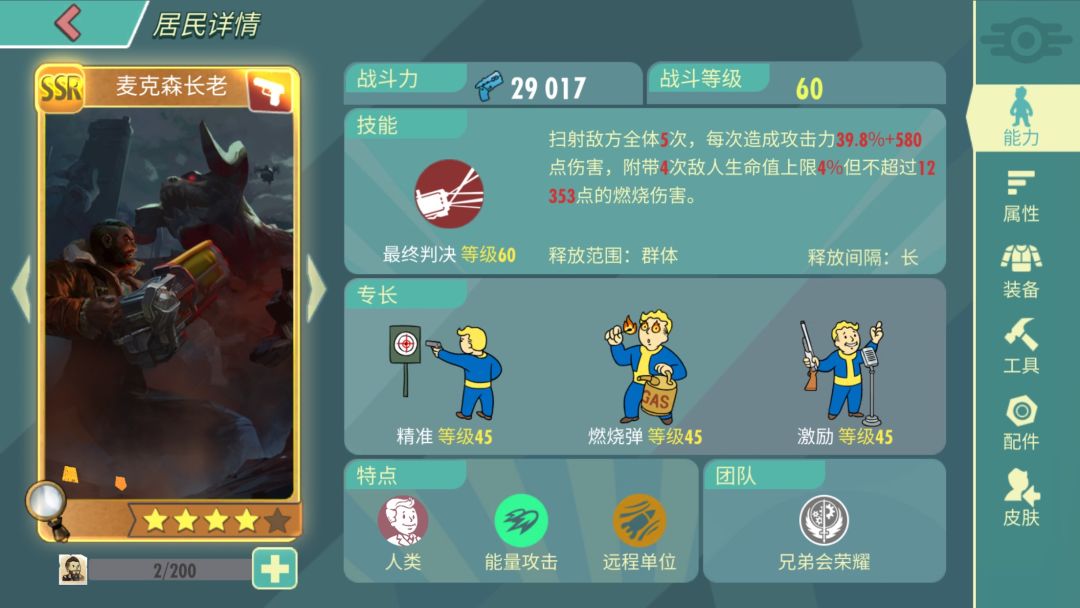 那就是兄弟会阵营公会的雇佣兵,非常完美的三围以外还有百分比掉血的dot,高暴击和高攻击配合其他辅助类居民简直逆天!所以一直都是公会boss战中万年老一!