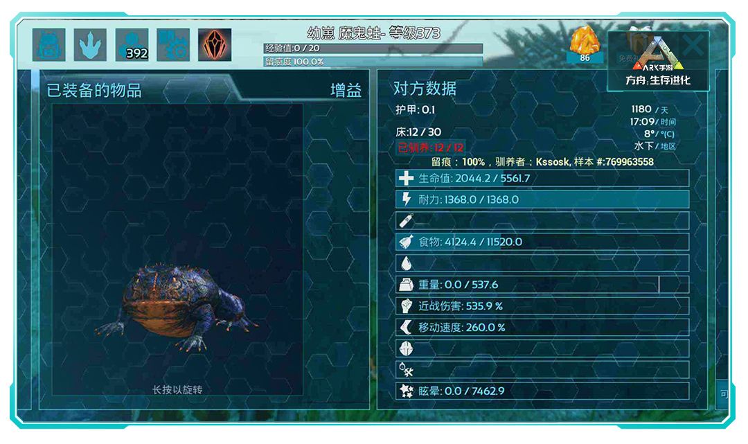 1、满留痕后,除了耐力和氧气以外,所有属性都会增加20%,包括移动速度和眩晕。增加是在野生基础属性上加的,不是驯服后的属性(我们知道南巨被驯服后血量会被大砍,留痕加的20%血量就是以没被砍的血量基础来算的。注意:飞行生物不会获得移速加成。