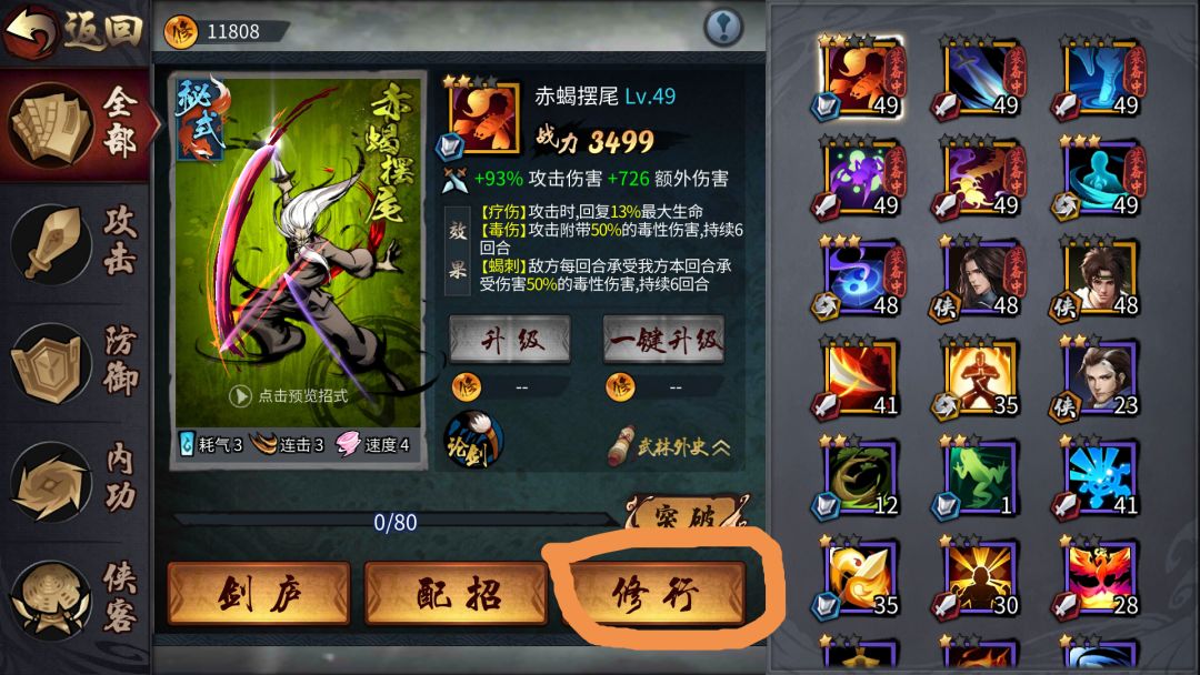 最后,向各位新入坑的萌新推荐一套实用又易得的招式套路:赤蝎摆尾(蝎子)、百足不僵(蜈蚣)、千珠万毒(蜘蛛)、例不虚发(侠客:小李)、玄玉通真、凤舞九天、独孤九剑、苍松迎客
