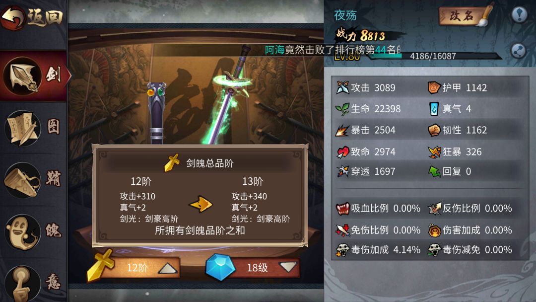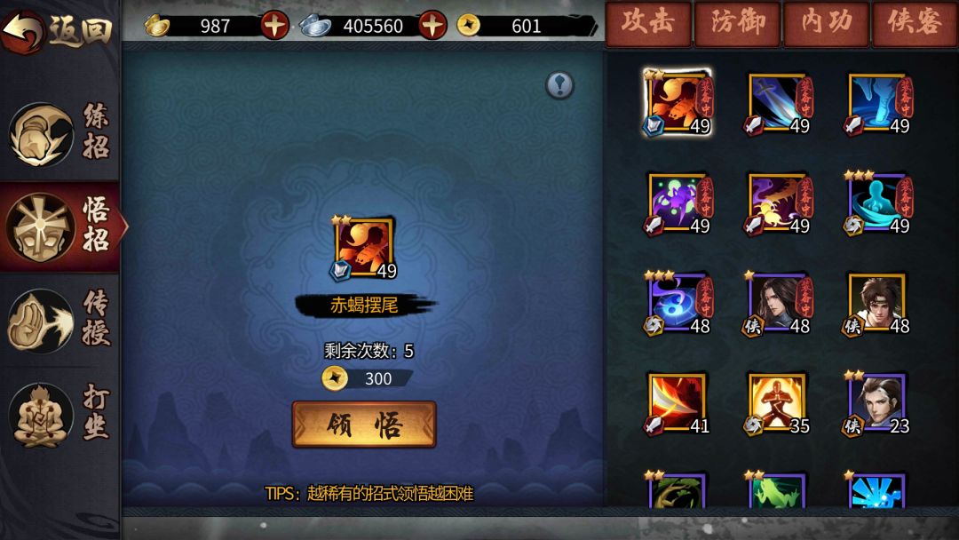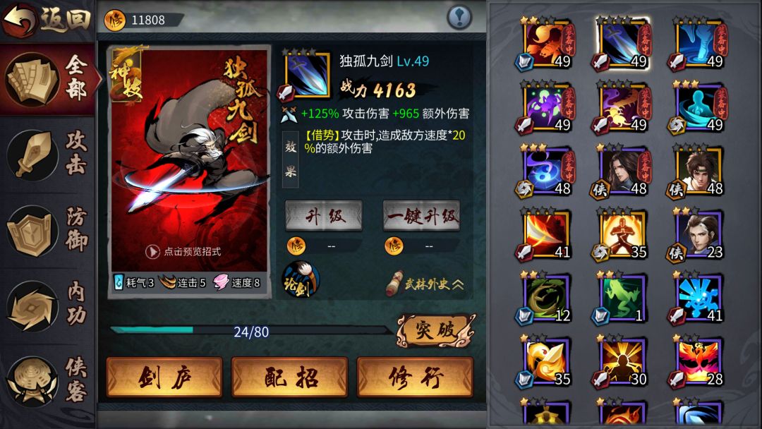 接着就是登录十天获得的人生第一招橙招——独孤九剑,别看是人人都有的大白菜,但性价比却高得离谱,对于高速招式与侠客的克制不是一点半点,这招可是几乎人人必带的,可千万别错过